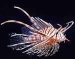 خروس ماهی ولیتان (Volitan Lionfish) که به نام های Common Lionfish و Red Lionfish و Turkeyfish و Butterfly Cod نیز شناخته می شوند . رنگبندی آنها نسبت به سنشان و اینکه به بلوغ رسیده اند یا نه متفاوت است . این گونه به رنگ مشکی و شرابی و سفید و قهوه ای و مشکی و خط های عمودی بر روی بدنشان دیده می شوند . همچنین دارای باله های سینه ای بزرگی هستند که ظاهر آن شبیه به فن است و شباهت بسیاری به خروس ماهی های مایلز دارند با این تفاوت که خروس ماهی های مایلز از اقیانوس هند و دریای سرخ و در شرق تا سوماترا یافت می شود . ماهی های ولیتان از نظر ظاهری یک سری تفاوت های اندک دارند و آن است که این ماهی ها خارهای کمتری روی باله های پشتی و مقعدی خود دارند .